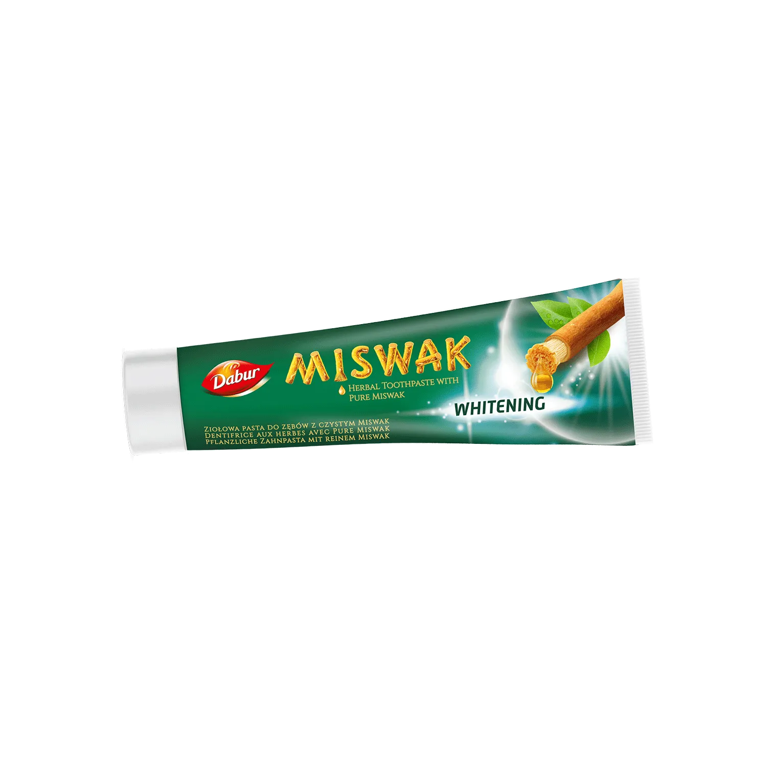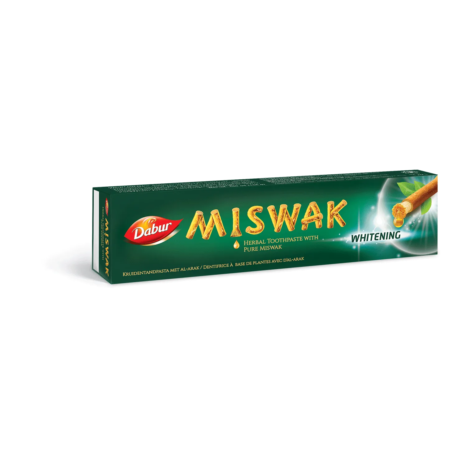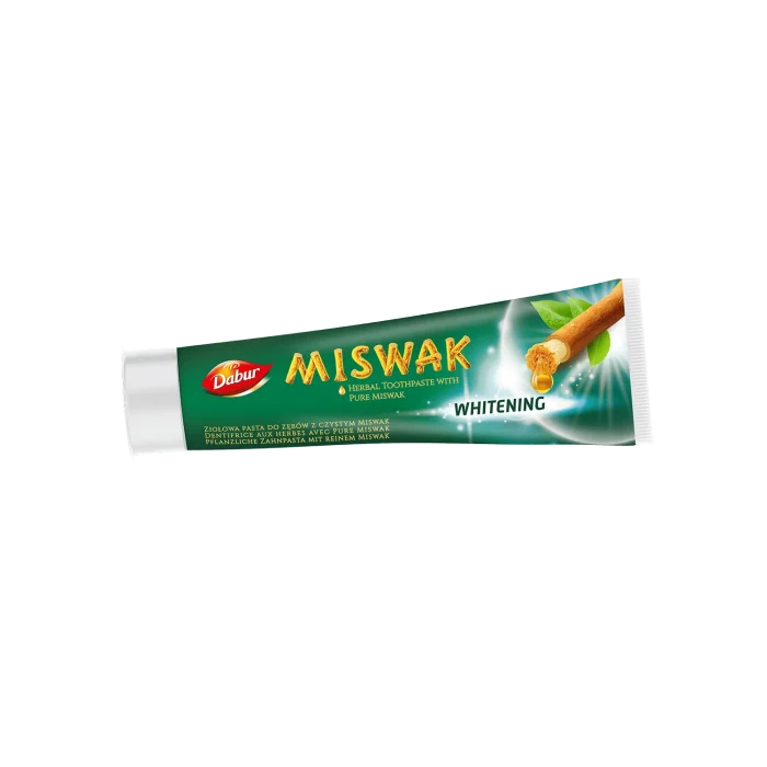 Билковата паста за зъби Dabur Miswak Whitening представлява чист екстракт от мисвак (Ал-арак), обогатена със съставки за нежно избелване на зъбите. Тя предлага естествено решение за по-ярка усмивка. Мисвак, известен със своите почистващи свойства, е в центъра на тази формула без флуорид, която осигурява освежаващо и ефективно почистване. Доверете се на силата на природата за нежно и естествено избелване на зъбите.